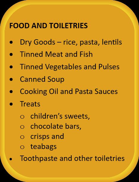 From December, when harvest supplies have been used up, we will be in urgent need of more food donations. We welcome offers from churches, schools and other groups to make special appeals for food. We are also grateful for individual donations. For the list of items we require for our Family Support deliveries please click on List of Family Support food items